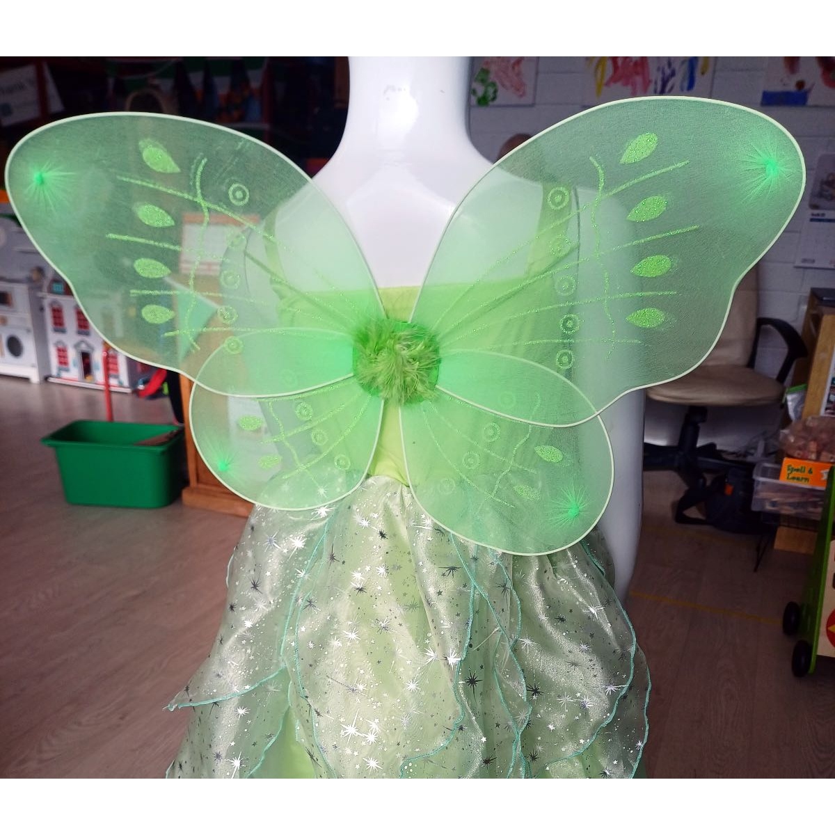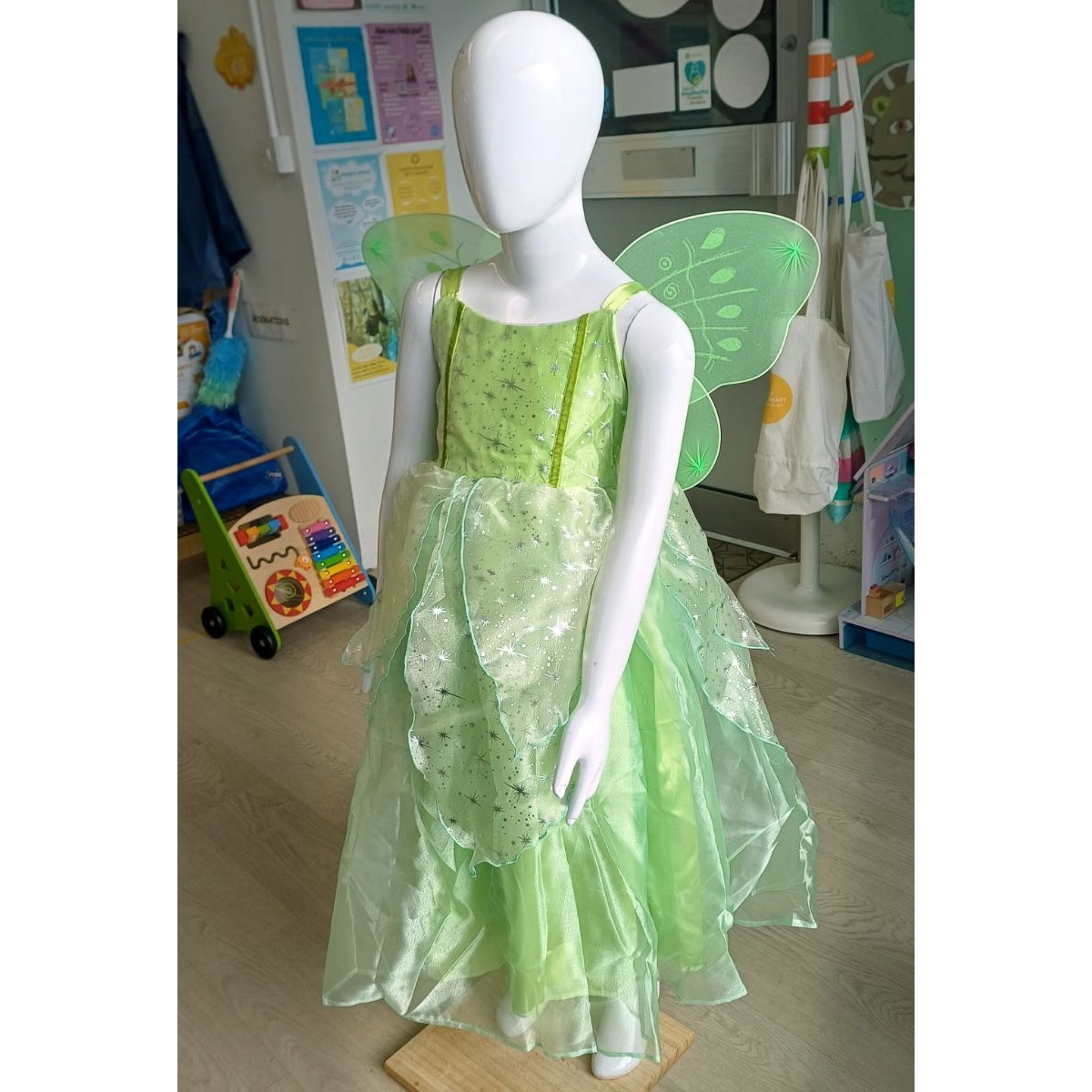 Green fairy Tinkerbell costume dress with wings. Age 6-9
