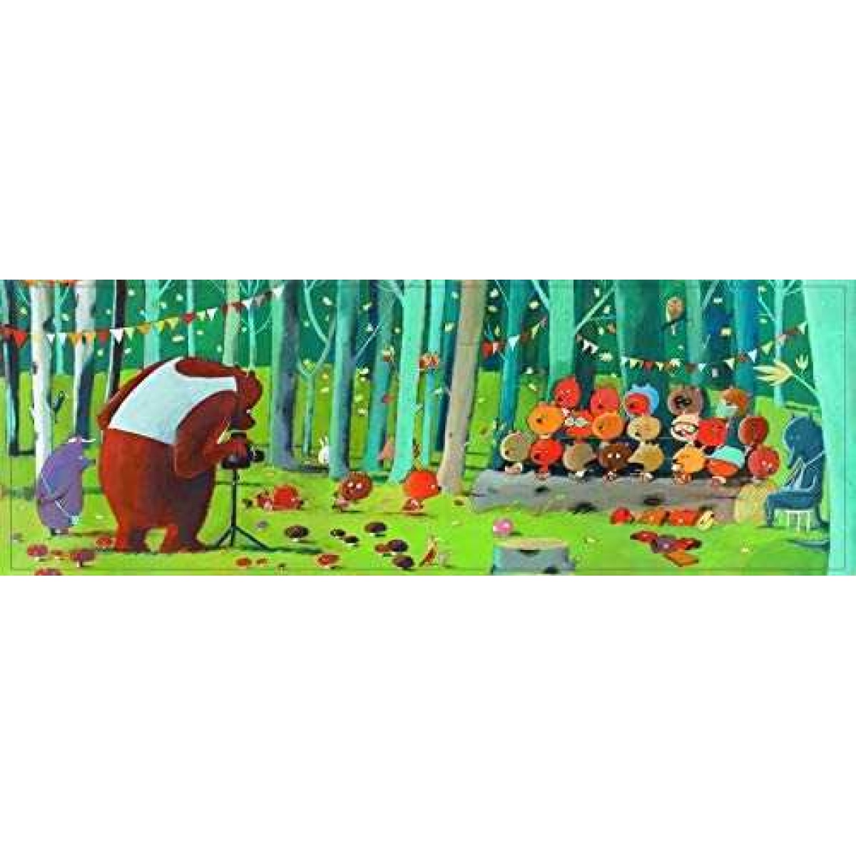 Forest Friends is a beautifully illustrated 100 piece jigsaw puzzle by Djeco. This charming picture depicts a group photograph being taken of forest bear friends. Improve pattern recognition and fine motor control.